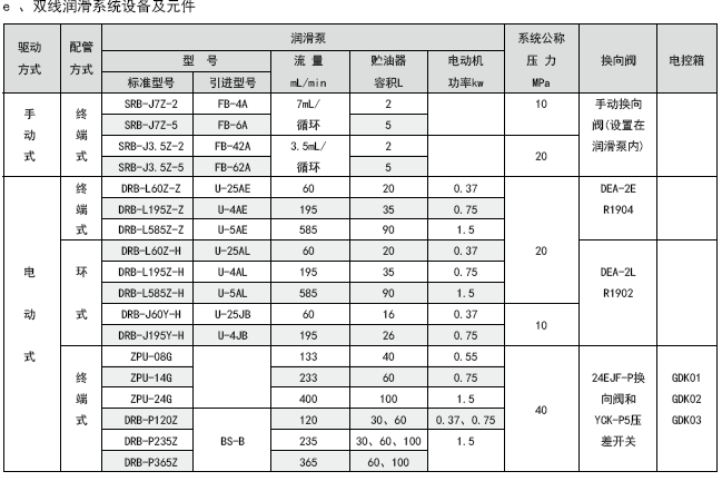 e、单线润滑系统的设备及元件汇总表 |